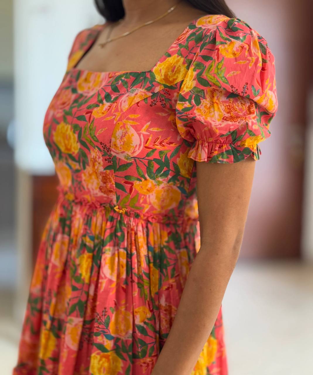 Introducing our latest essential: the pink Floral Dress. Crafted for comfort, this easy-breezy dress features a delightful floral print. With a charming neck detail and playful frill at the flare, it’s perfect for sunny days.