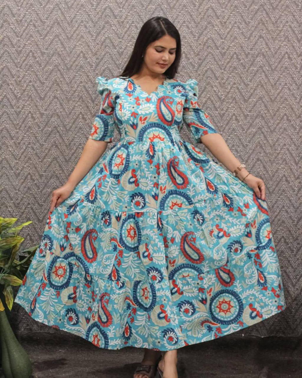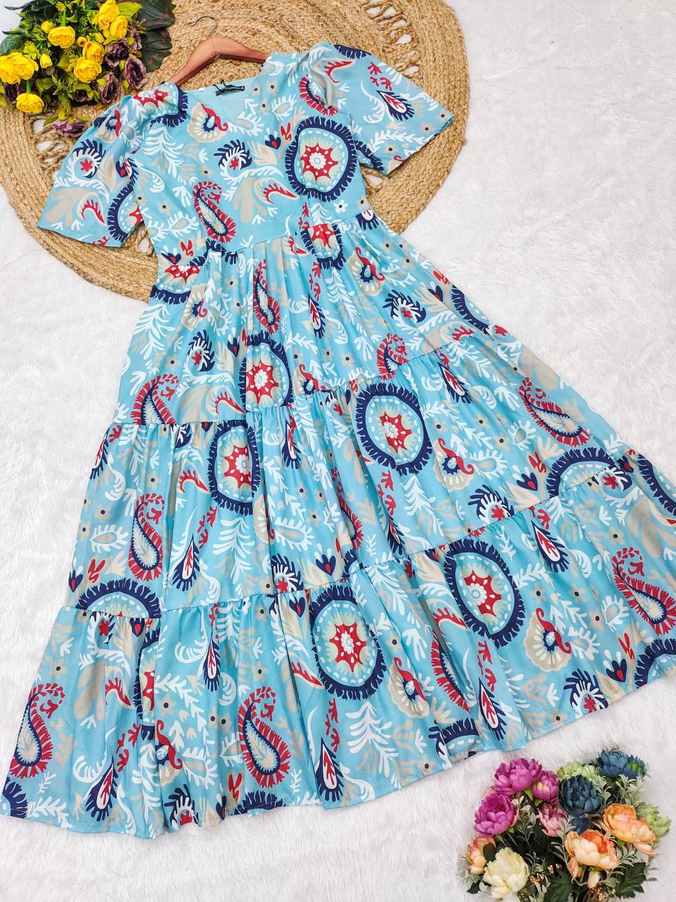 You're Gonna Love Elegance With Modern Touch ,Here's Presenting You A Perfect Summer Vibe Maxi with 3 Tier Flare. A Beautiful Printed Dress Perfect for Day Out 🌺