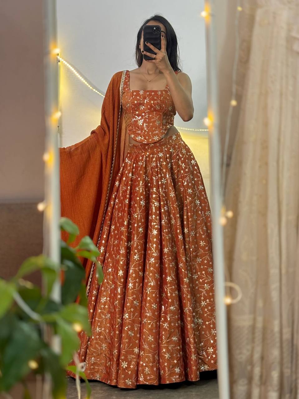- Lehenga Flair: 14-kali design with over 3 meters of flare, creating a grand, elegant silhouette.
